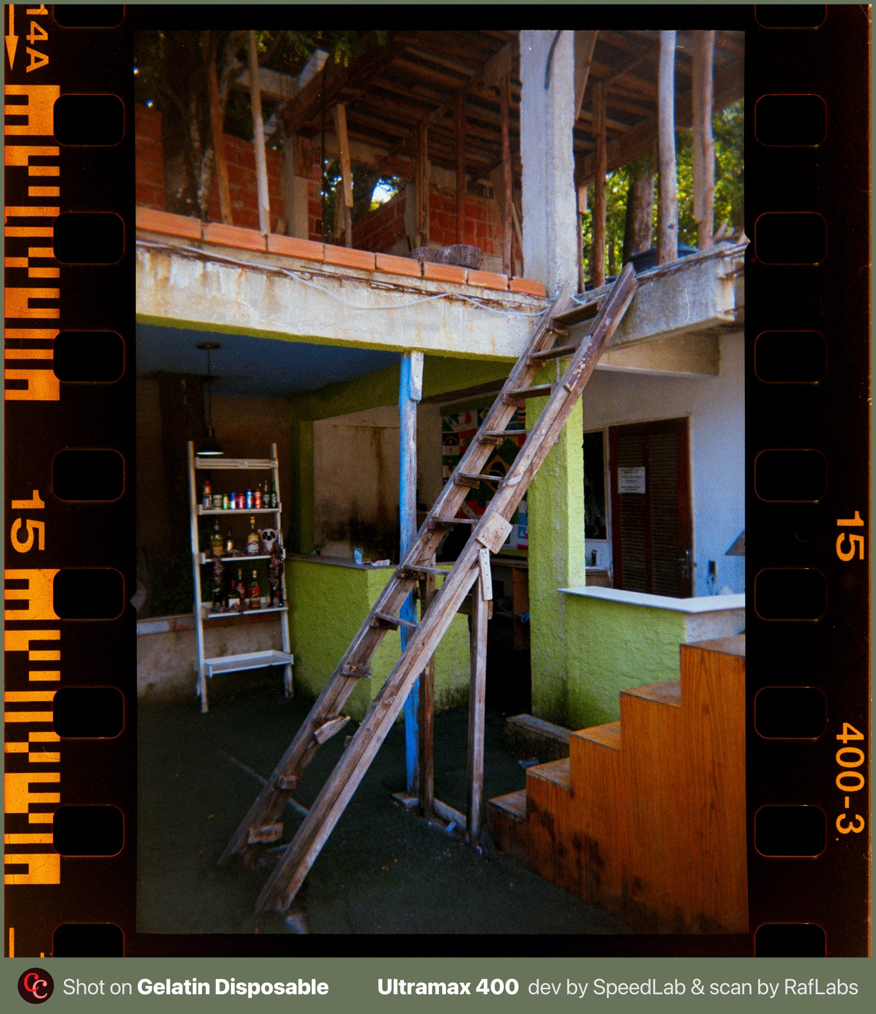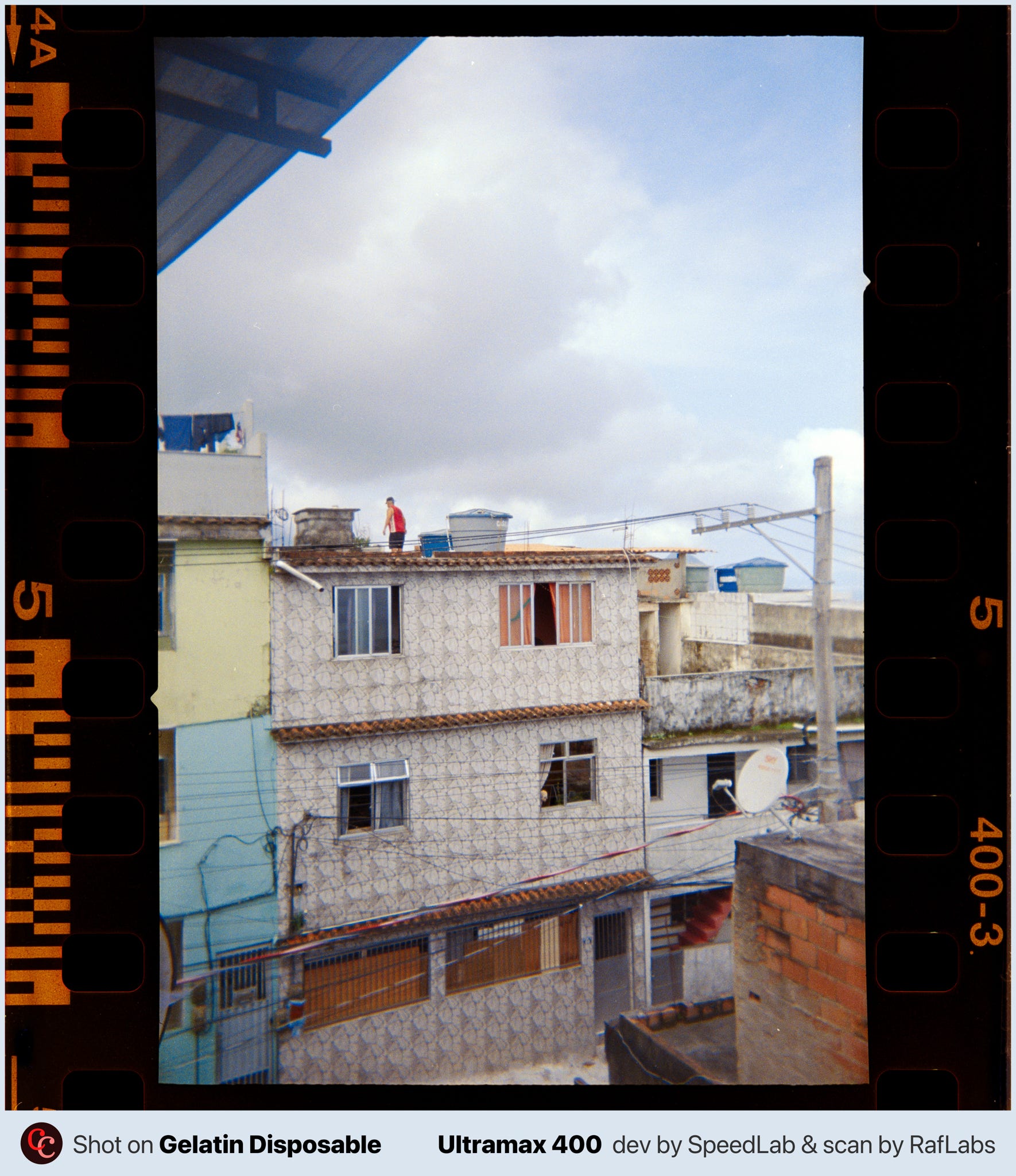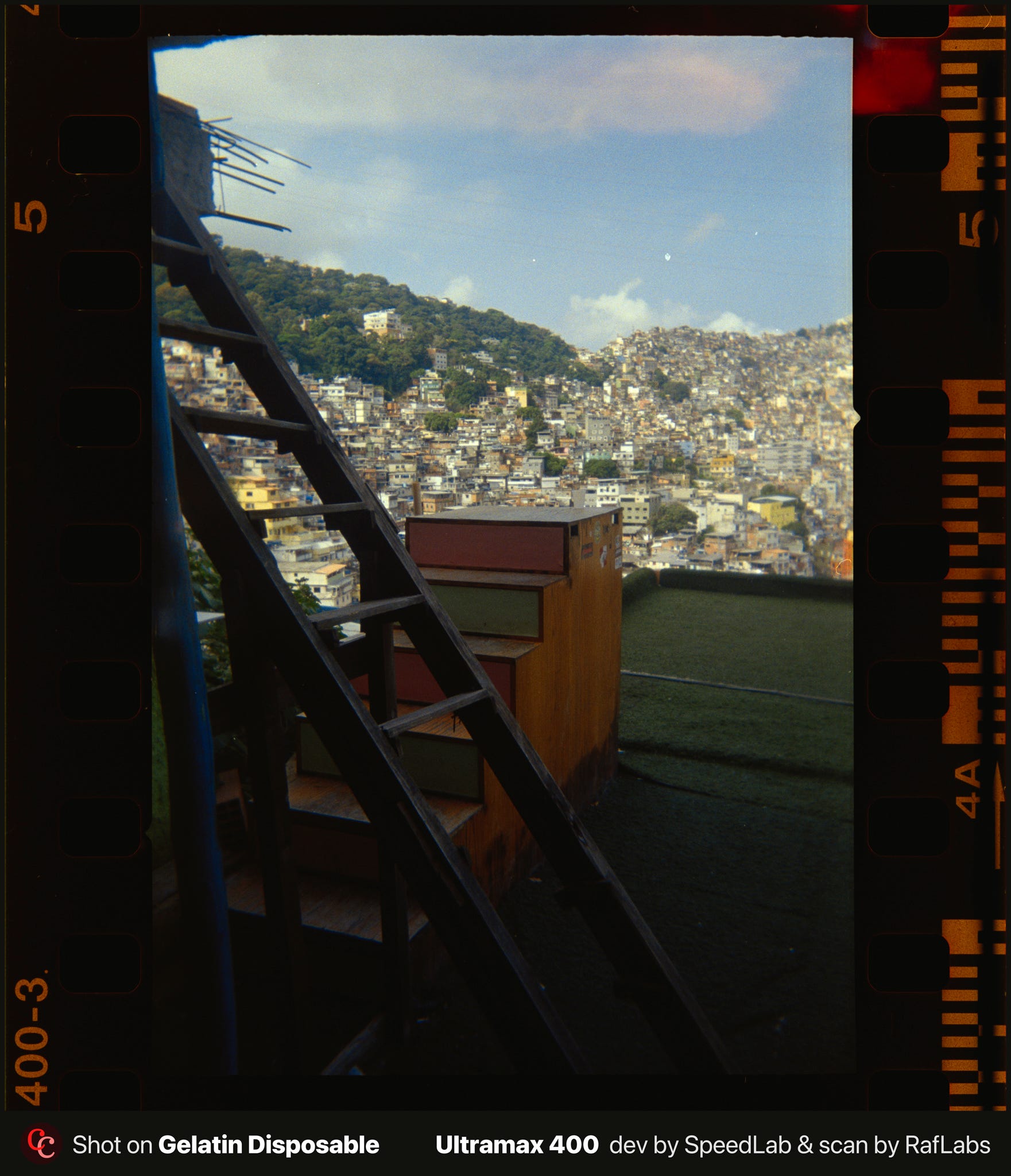 Subi preparado pra me sentir vulnerável. Levei câmeras descartáveis da Gelatin Labs. Uma no meu bolso, outra no bolso do Edgard, leves o bastante pra não chamar atenção e baratas o bastante pra não doer se sumissem. Celular no outro bolso. Nenhuma câmera boa, nenhuma Leica, e me arrependo um pouco disso, porque ainda não revelei o filme das disposables. Essa escolha de deixar a câmera boa em casa também diz algo.